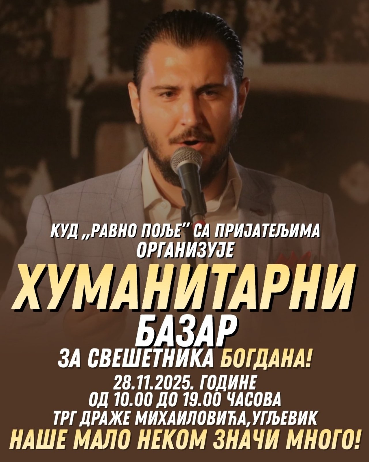 КУД „Равно поље“ са пријатељима организује хуманитарни базар за свештеника Богдана 28.11.2025. године, на Тргу Драже Михаиловића у Угљевику, од 10 до 19 часова.